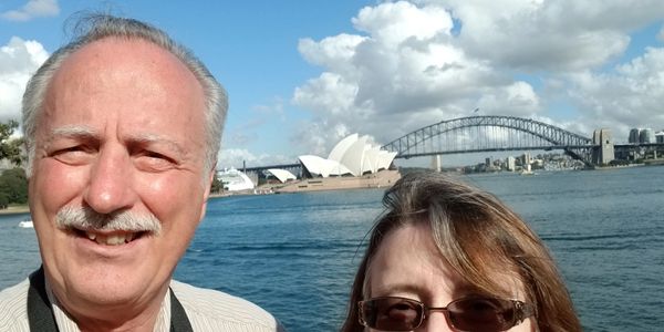 We did a guided tour to Australia and New Zealand in 2017. We began in Cairns, Australia. After few days, we flew to Sydney. (Us with the Sydney Opera House and the Sydney harbor bridge in the background)